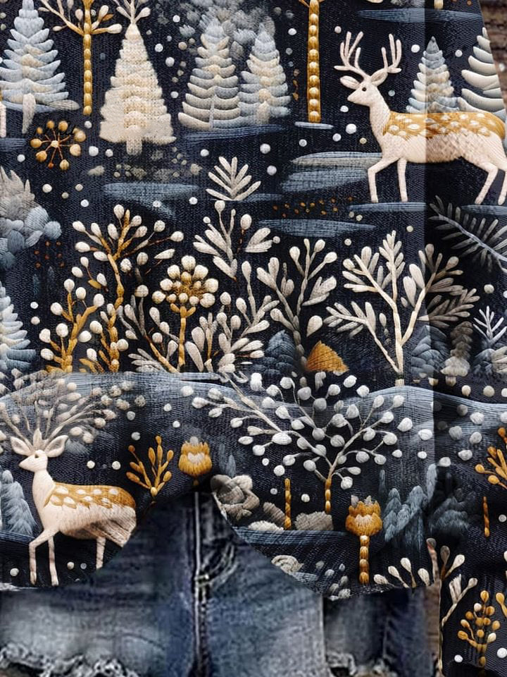 Christmas Gift Christmas Tree Christmas Deer Art Print Knit Pullover Sweater
